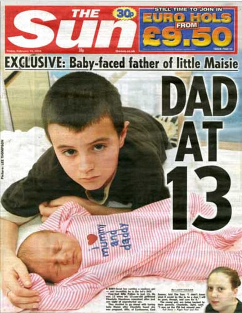 The story went viral when it was announced that 13-year-old Alfie Patten was going to become a father. Even the prime minister at the time, David Cameron, offered his thoughts on the 2009 case, in which it was alleged that the father had fathered a child before reaching the legal age to buy party poppers.