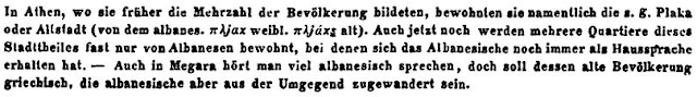 “Në Athinë, ku dikur përbënin shumicën e popullsisë, ata banojnë veçanërisht në të ashtuquajturën Plaka ose Qyteti i Vjetër (nga shqipja: pljak – i vjetër, femërore: pljaka).”