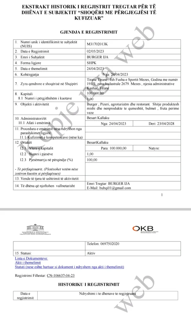 Së dyti, çifti i showbizit nuk ka një historik biznesi. Xhensila Myrtezaj dhe Besart Kallaku, dy bizneset kryesore kanë Silabel dhe Burger Ija, me aktivitet vetëm dy vitet e fundit.