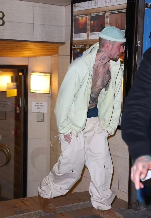 The Grammy-winning artist appeared to prioritize his wellness with a visit to Wall Street Bath, a Russian bathhouse known for its saunas, steam rooms, and massage therapy services. Bieber arrived in a laid-back, casual outfit, wearing a pale yellow sweatshirt with its hood up. He left the sweatshirt unzipped, revealing his heavily tattooed chest.