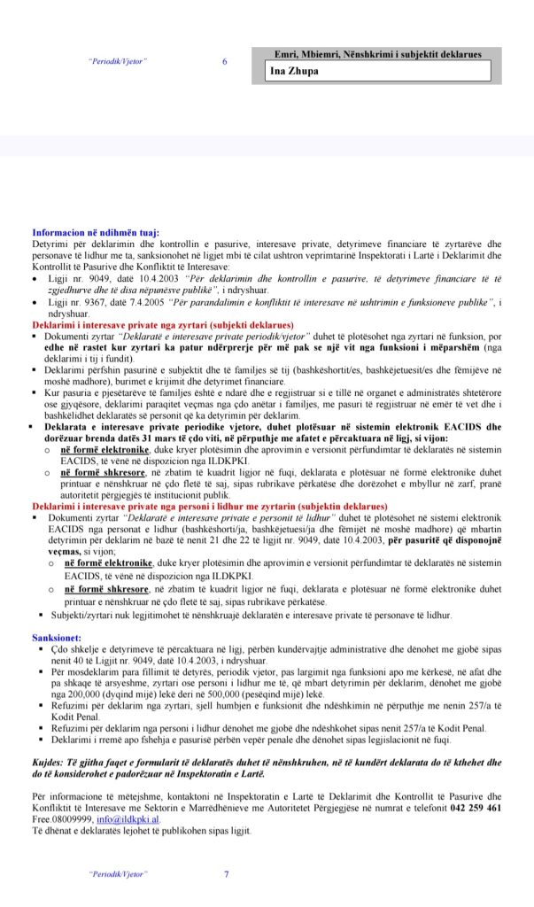 Ndëkaq, Goçi nuk figuron në deklaratat e pasurisë së zonjës Ina Zhupa, ndonëse ligji parashikon qartë që një subjekt i deklaruar duhet të deklarojë pasurinë e bashkëshortit ose bashkëjetuesit. Edhe deputeti i PD Belind Këlliçit nuk e deklaroi pasurinë e bashkëjetueses, por pasi i thirrën në SPAK ndryshoi mendje, duke përmbushur detyrimin ligjor.