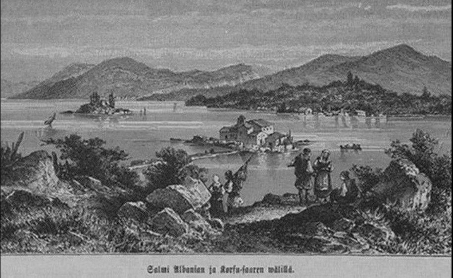 “Mes kanalit shqiptar dhe ishullit te Korfuzit”. Kjo eshte dicitura qe na percjell gravura e vitit 1879, botuar ne nje reviste finlandeze, te cilen e hasa kohet e fundit rastesisht duke germuar ne arkivat skandinave.