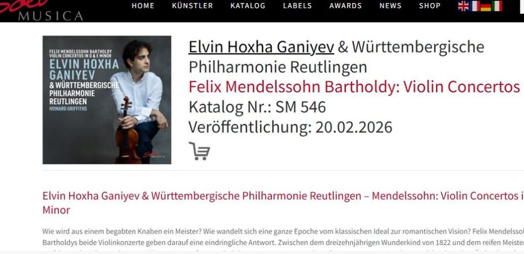 Dy koncertet në Re dhe Mi Minor, me 3 pjesë secila janë shqëruar nga Württembergische Philharmonie Reutlingen, një nga orkestrat më elitare në Gjermani, ku dirigjent ishte anglo-zvicerani, Howard Griffiths, një emër i madh i muzikës klasike dhe koncertore.