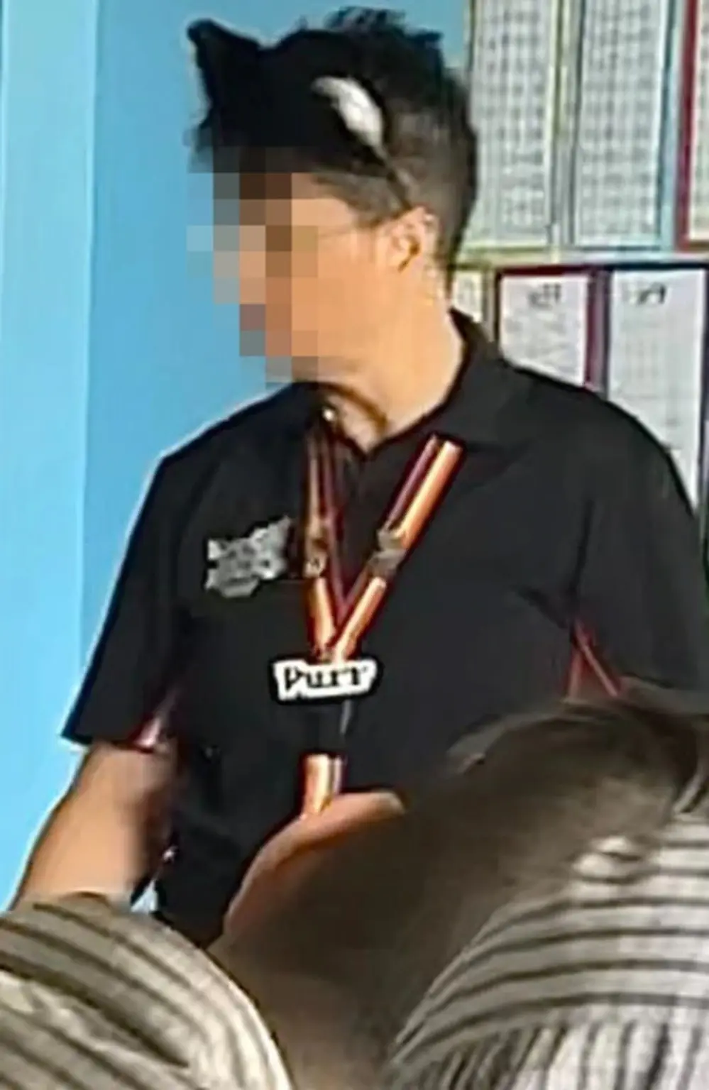 Photos and short videos, first published by The Courier-Mail, show the teacher wearing a cat ear headband and lanyard with the word “purr” on it while in front of a classroom.