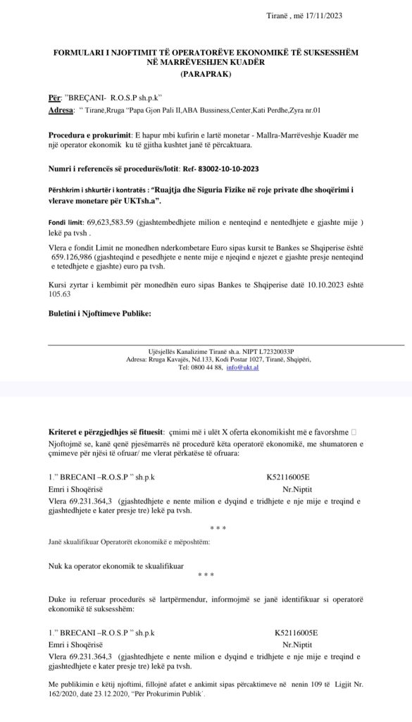 Gjatë kohës kur Erzen Breçani ishte në burg dhe më pas në arrest shtëpie, në llogarinë e kompnisë së tij kanë kaluar miliona euro para publike, në zbatim të kontratave të dyshuara korruptive me disa institucione publike. Një tjetër tender me vlerë 700 mijë euro, gjithnjë me pazar në tavolinë, e ka marrë nga UKT tre ditë para se të arrestohej nga SPAK për pastrim parash.
