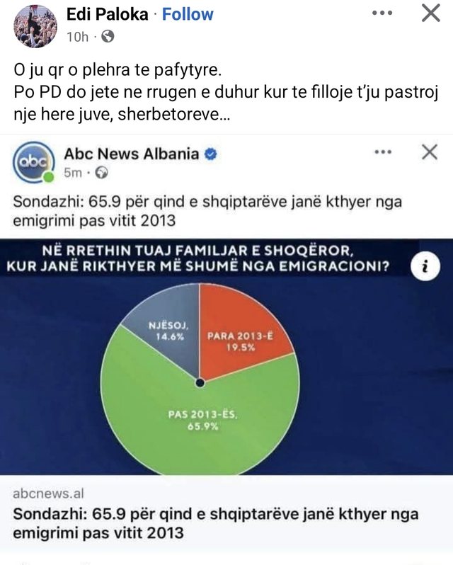 Paloka e shoqëron komentin e tij me një link nga një medie informative.