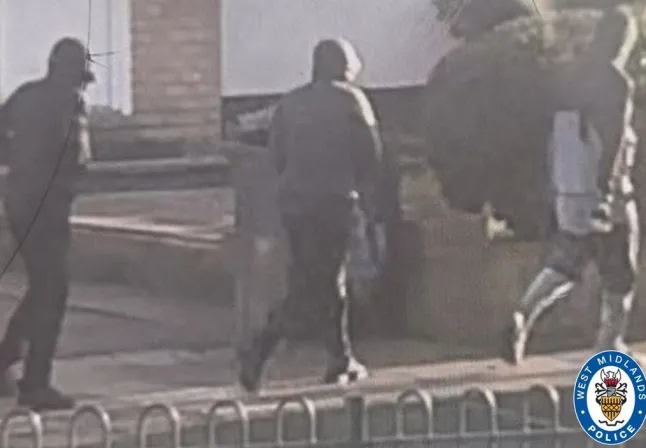 A search is ongoing for a group of hooded men who were filmed leaving the area. Secretly filmed footage shows the group walking quickly and almost running as they fled the area.