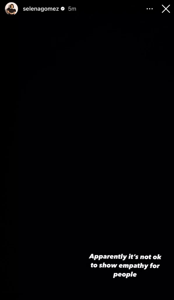 In another Instagram Story, Gomez wrote: “Apparently it’s not ok to show empathy for people.”
