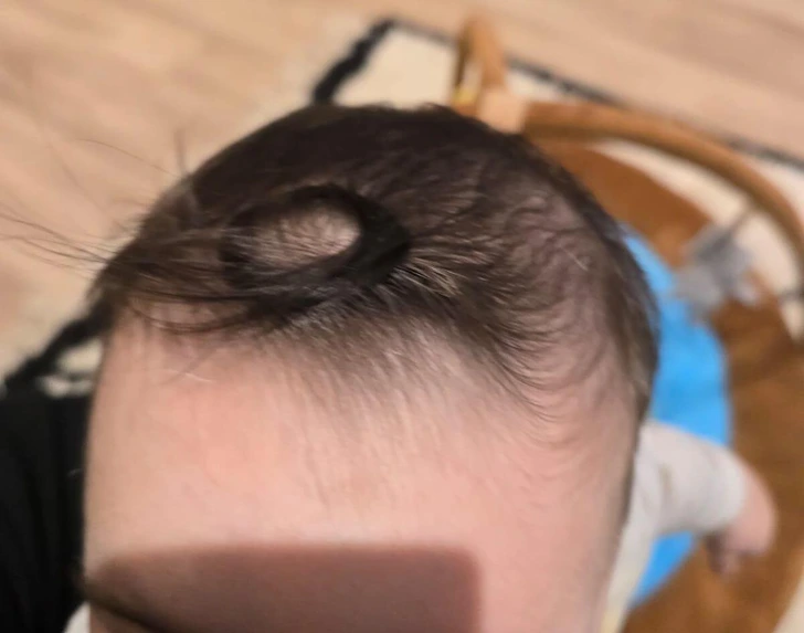 6. “My son (7m) has a front whorl/cowlick with hairs that grow longer than the rest.”