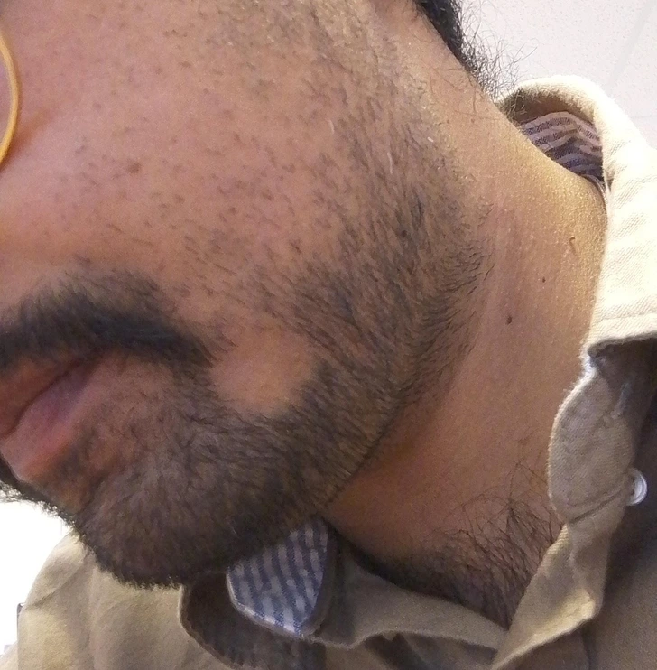 8. “This circular gap in my beard where the hair won’t grow back.”