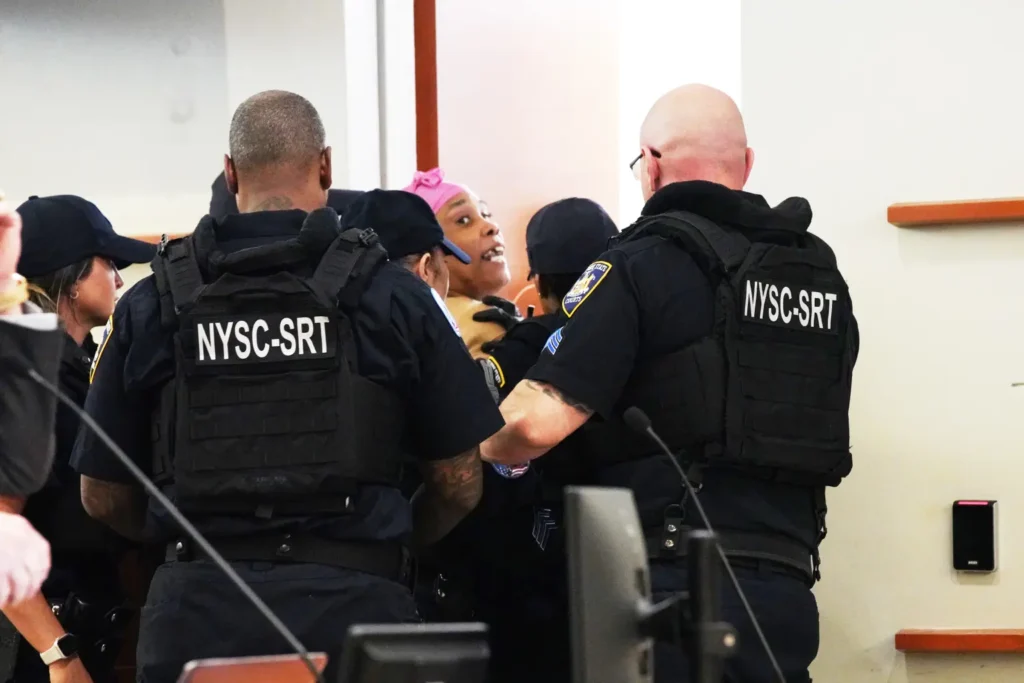 “I took responsibility for the sake of my son being released,” Jones shouted as she was being dragged from the courtroom on Monday.