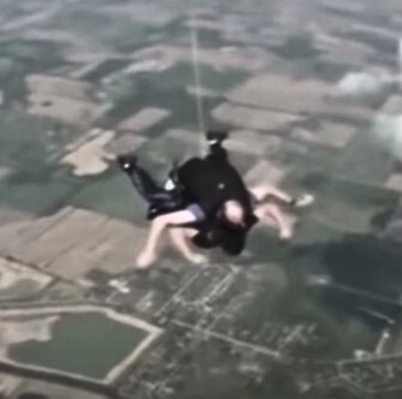 As the footage plays out, viewers watch in disbelief as McGuire, mid-freefall, suddenly realizes the unimaginable: he has jumped without a parachute.